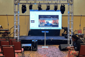 High-resolution LED screen installation for a corporate event, ensuring professional branding and crystal-clear visuals.